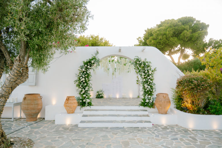 A Serene Paros Wedding: White Flowers and Aegean Sunsets