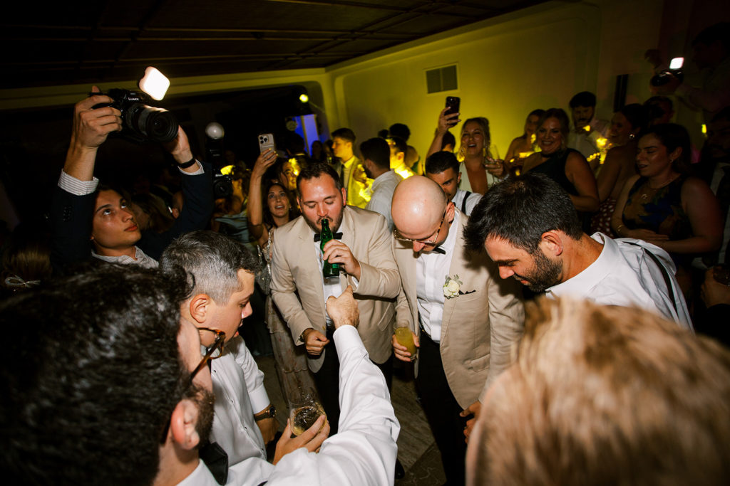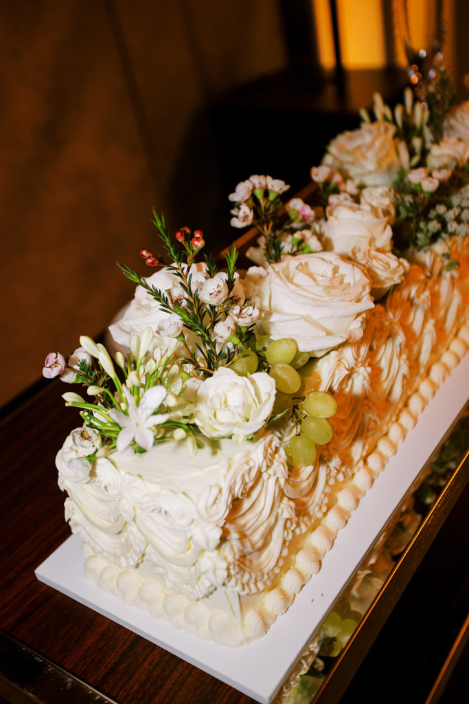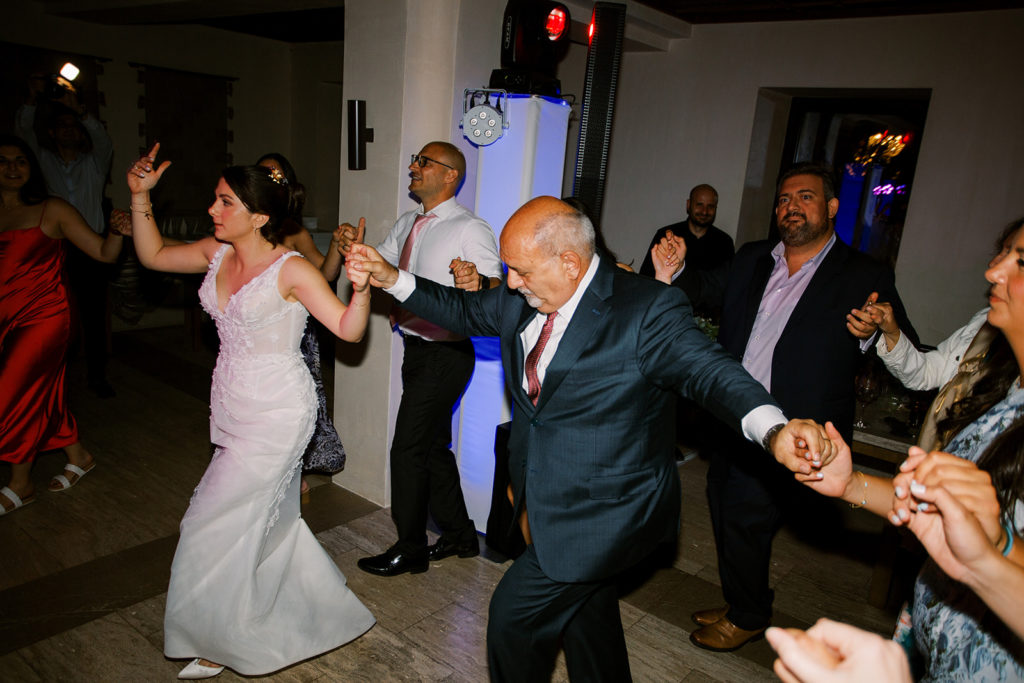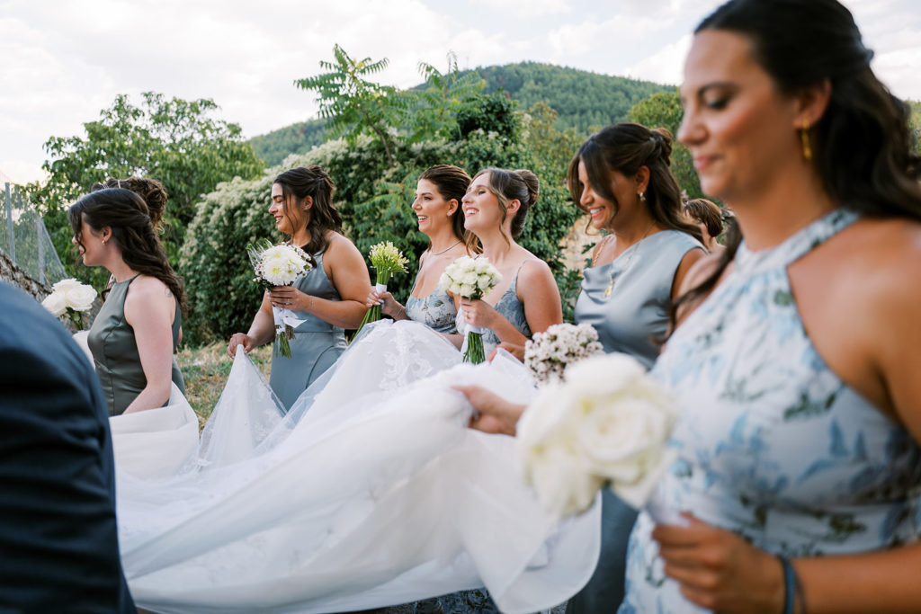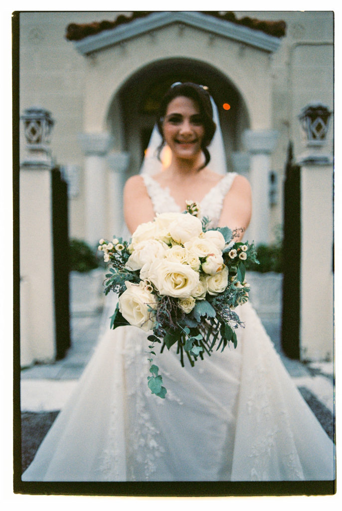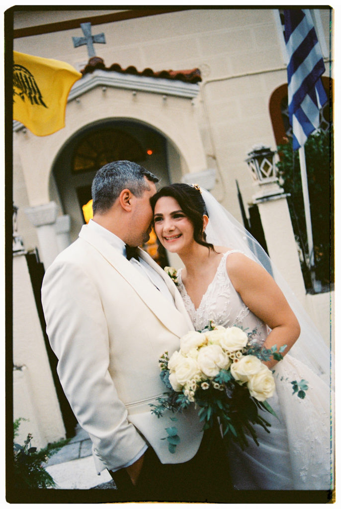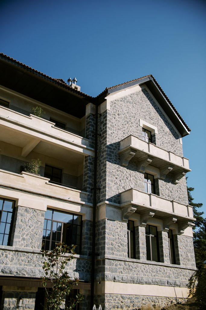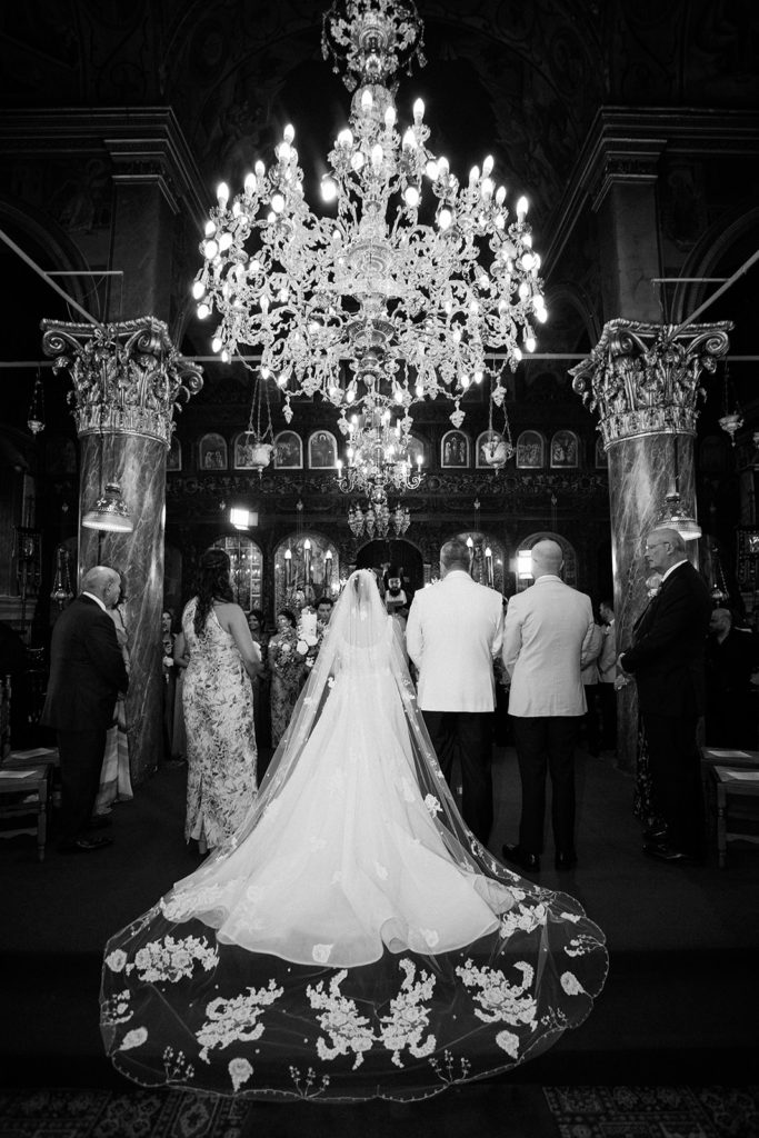 The floral palette embraced soothing greens and soft whites, bringing the beauty of nature into every detail. Elegant arrangements of roses, delphinium, hydrangeas, and wild greenery adorned the ceremony and reception spaces, echoing the surrounding forest. Inside the stone-clad chapel, lush florals framed the traditional Greek wedding ritual with a delicate yet refined aesthetic, perfectly matching the bride’s timeless style.