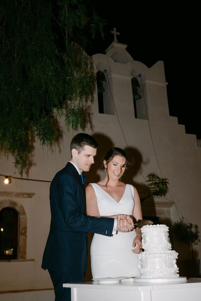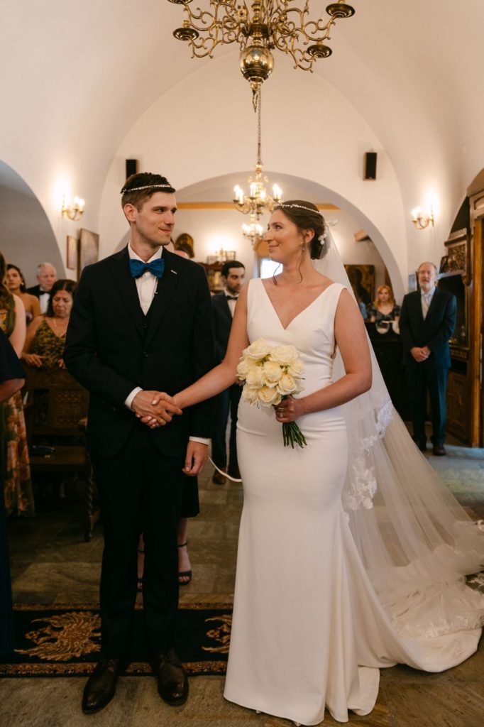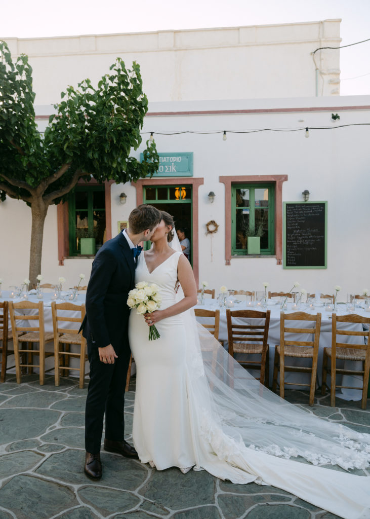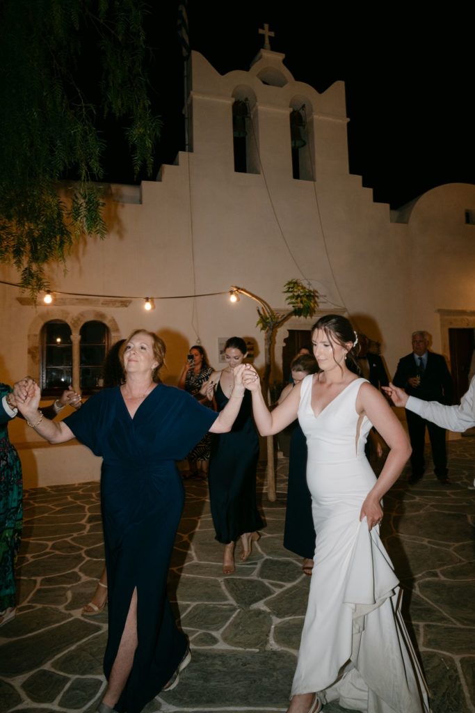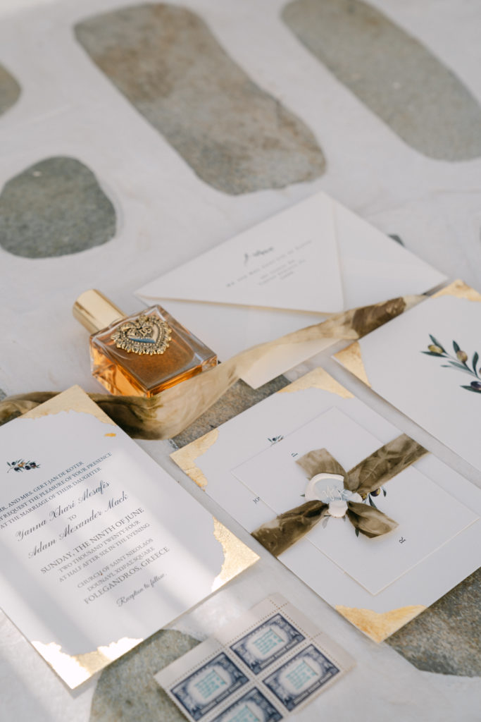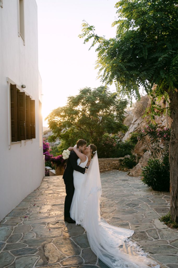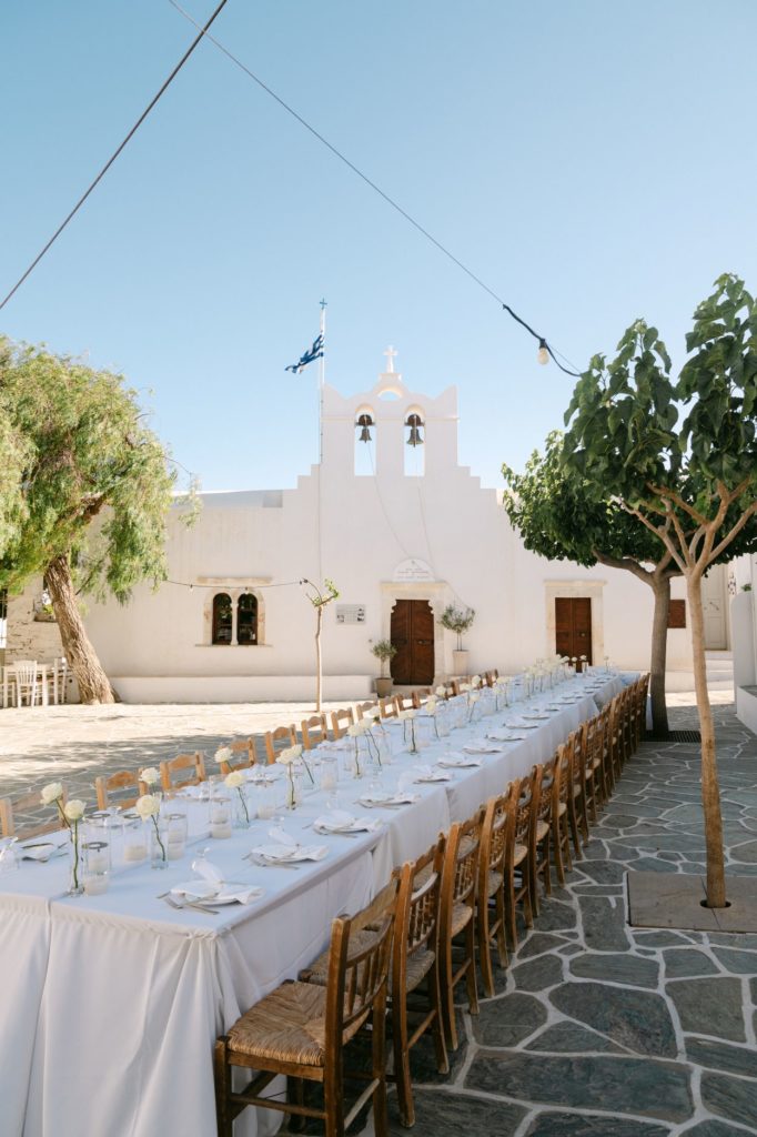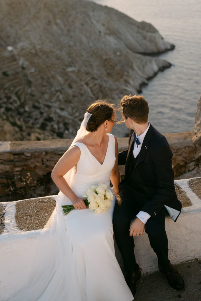Set in the enchanting village of Folegandros, this destination wedding embraced the authentic beauty of the Cyclades with a refined and minimalist aesthetic. Surrounded by whitewashed chapels, stone pathways, and the warm glow of the Aegean sunset, the couple exchanged vows in a traditional Greek Orthodox church — a setting that perfectly captures the magic of a Greek island wedding in Folegandros. The timeless architecture and intimate village atmosphere created an unforgettable backdrop for this elegant celebration.