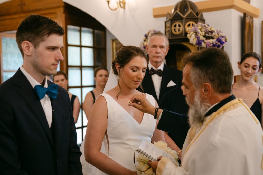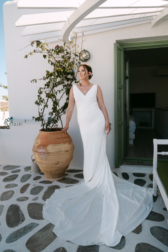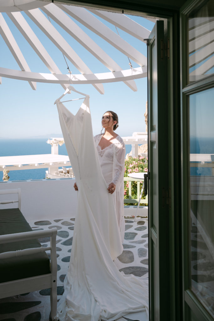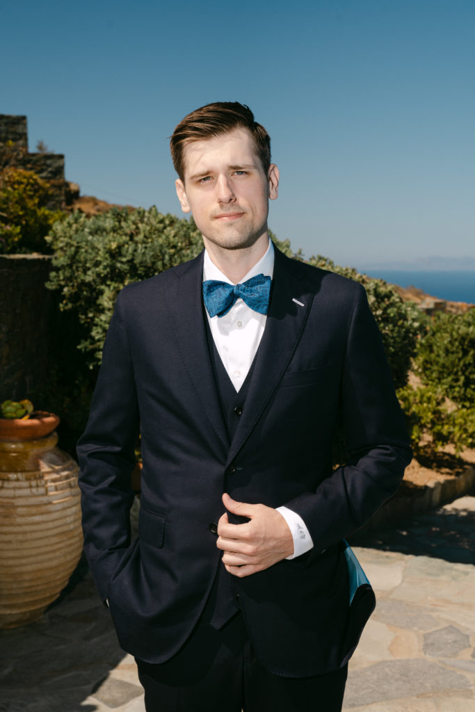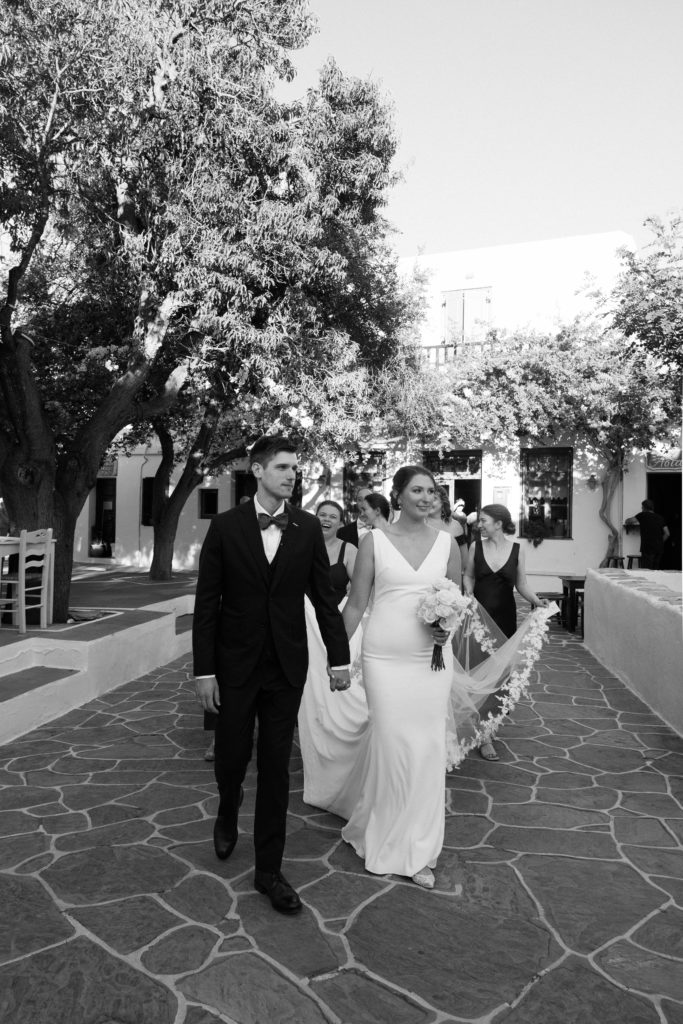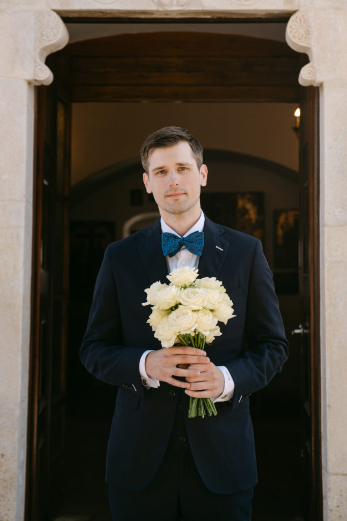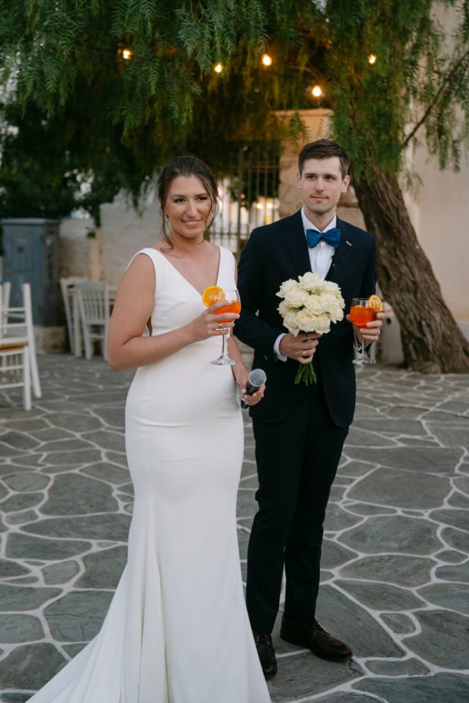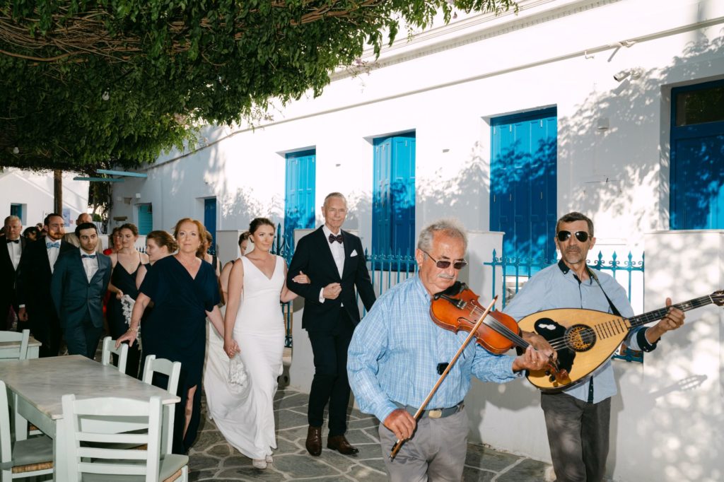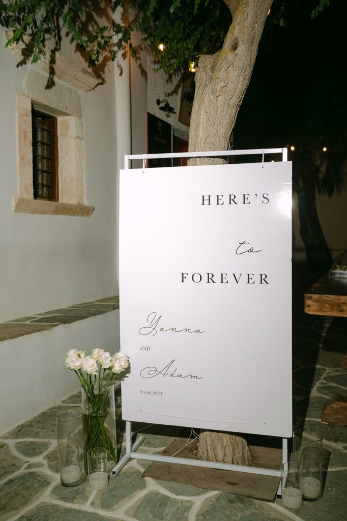 Set in the enchanting village of Folegandros, this destination wedding embraced the authentic beauty of the Cyclades with a refined and minimalist aesthetic. Surrounded by whitewashed chapels, stone pathways, and the warm glow of the Aegean sunset, the couple exchanged vows in a traditional Greek Orthodox church — a setting that perfectly captures the magic of a Greek island wedding in Folegandros. The timeless architecture and intimate village atmosphere created an unforgettable backdrop for this elegant celebration.