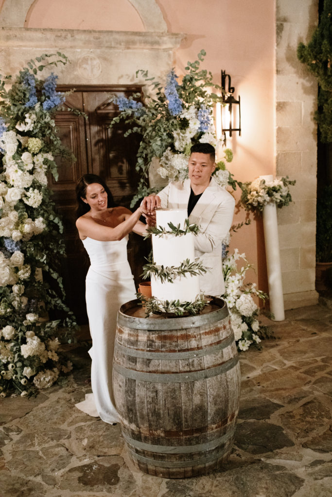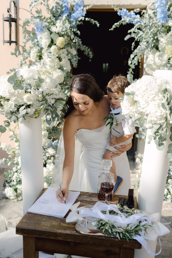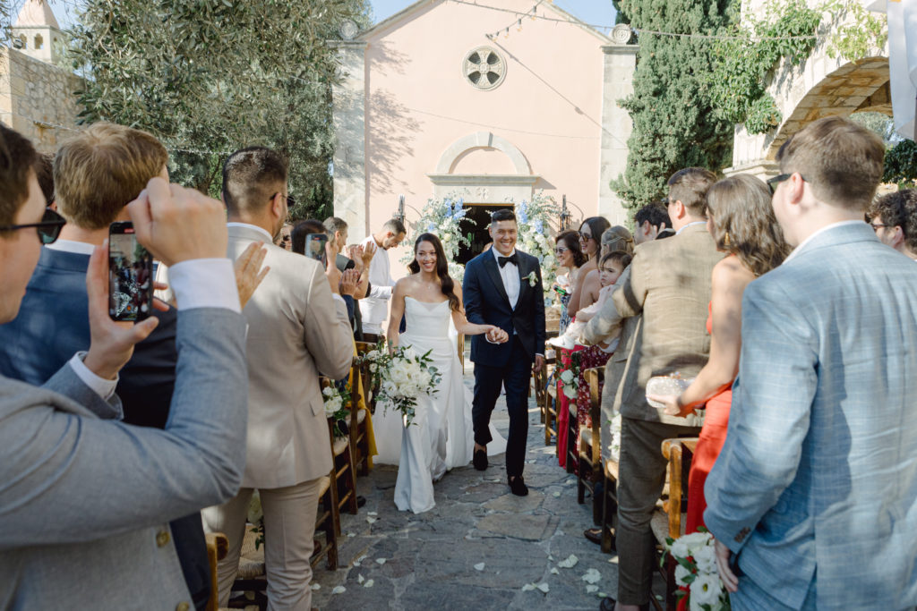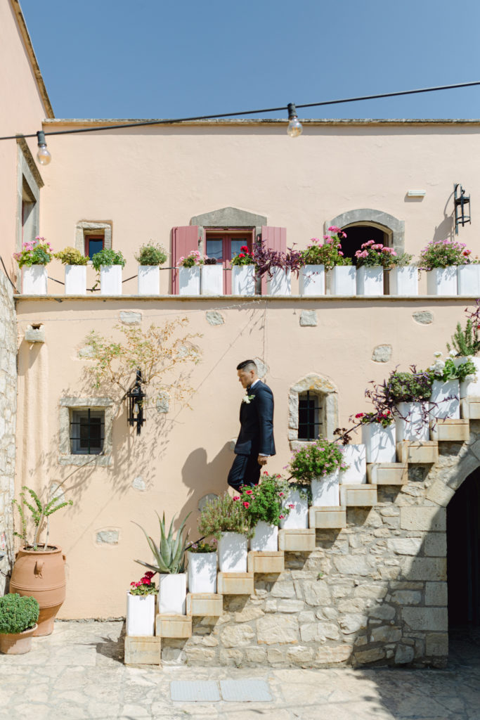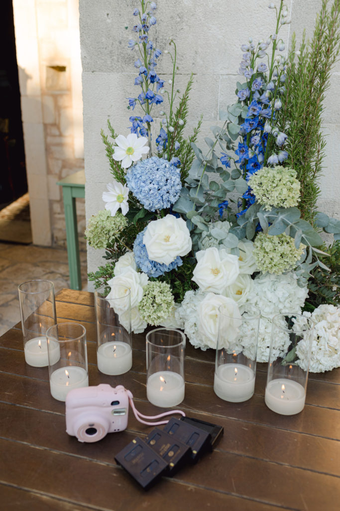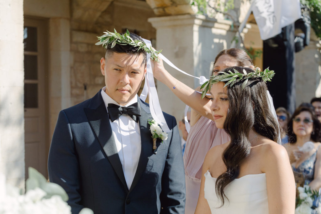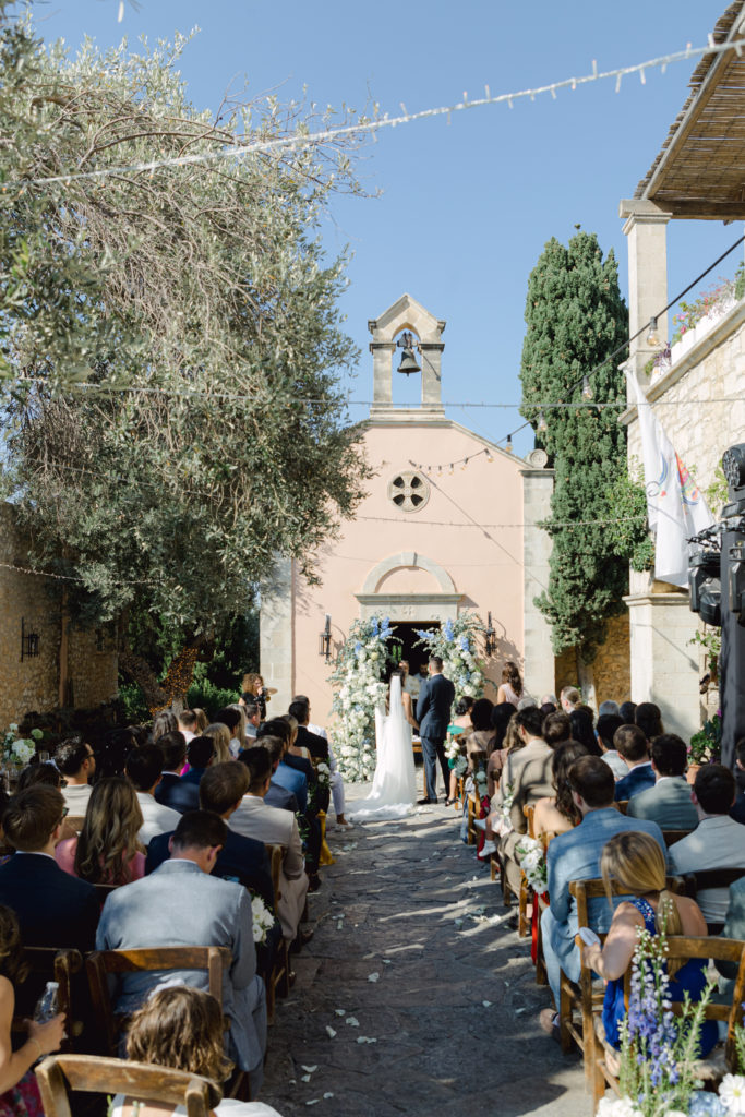 In the heart of Crete, where olive trees sway like storytellers and the horizon melts into soft Mediterranean blue, a love story blossomed into a fairytale celebration. The couple chose this historic estate for its timeless beauty, surrounded by groves that seemed to hold centuries of whispered blessings. White, blue, and green florals cascaded like living poetry, setting the scene for a ceremony woven with emotion, sunlight, and the gentle hum of nature.