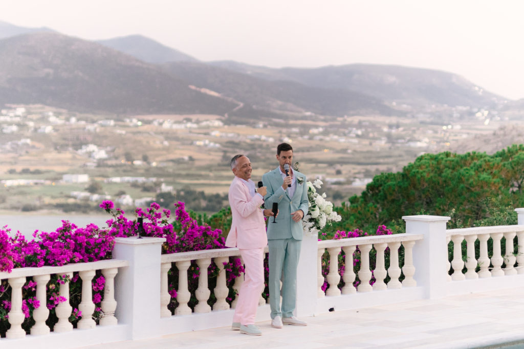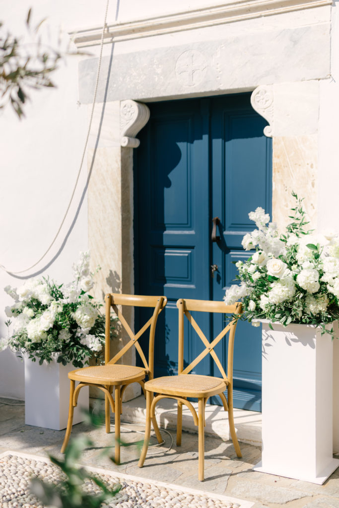Set against the serene beauty of Paros, this romantic villa wedding celebrated love in one of the island’s most enchanting locations. The ceremony took place at a charming whitewashed chapel framed by olive trees and soft mountain views, creating a timeless Greek atmosphere. Warm sunlight, natural textures, and peaceful surroundings set the tone for an intimate and heartfelt union.