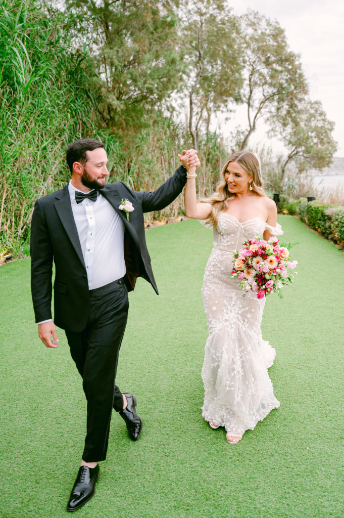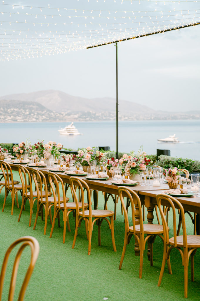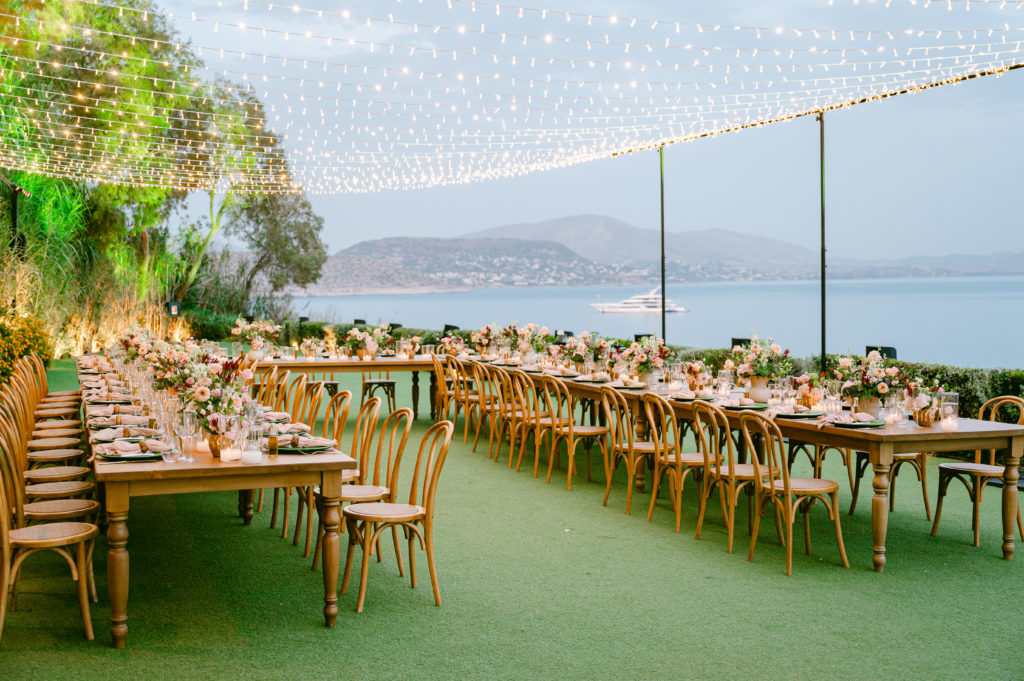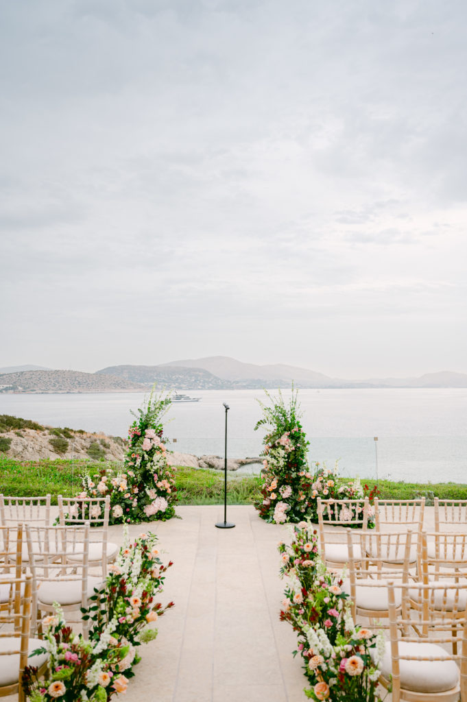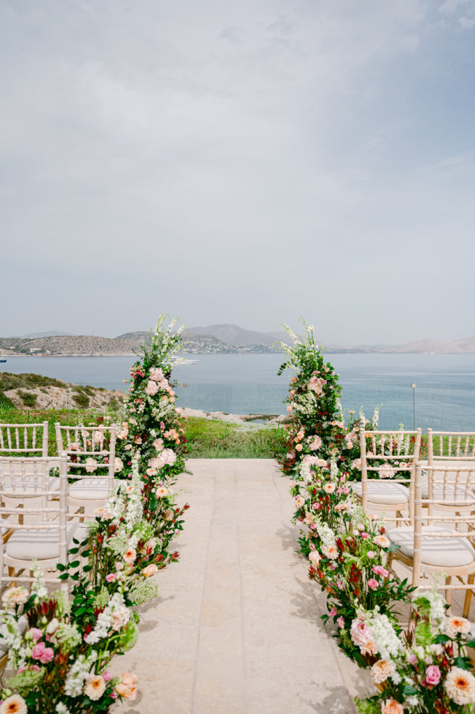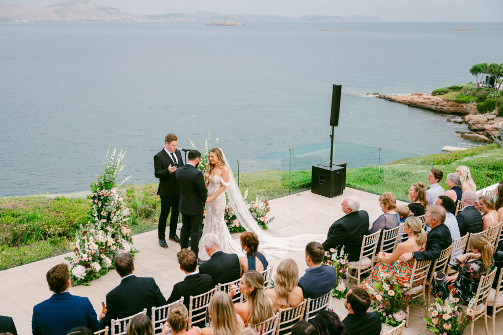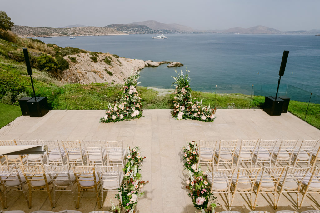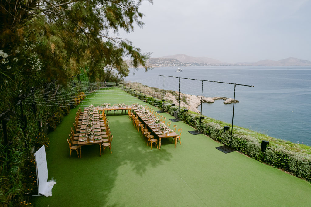 This romantic destination wedding unfolded in a lush private cliffside garden overlooking the endless blue of the Athens Riviera. Filled with heartfelt moments and vibrant décor, it beautifully reflected the couple’s love story.