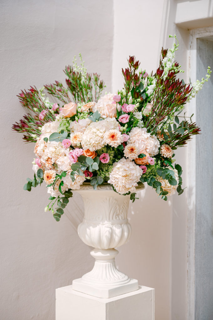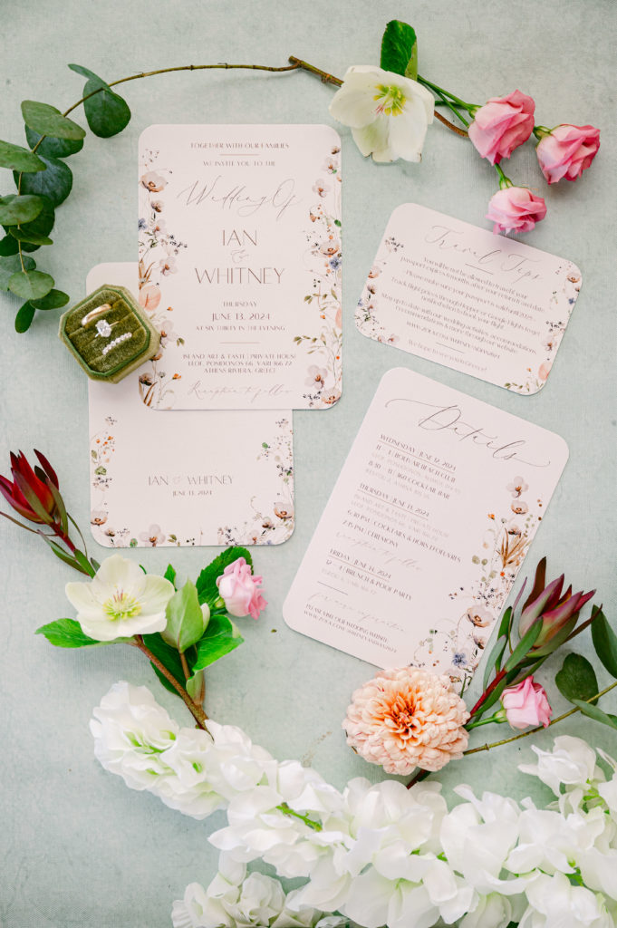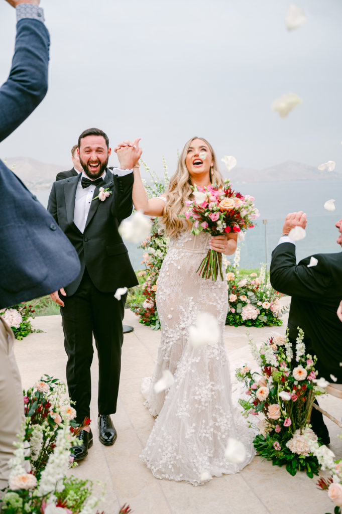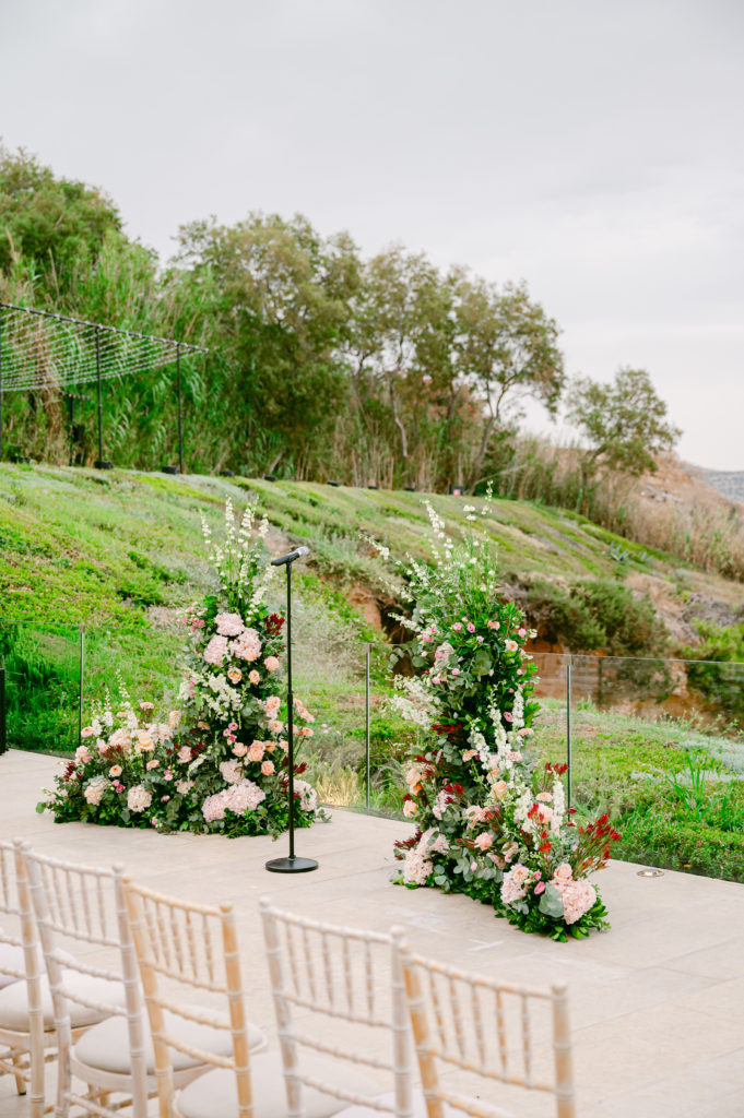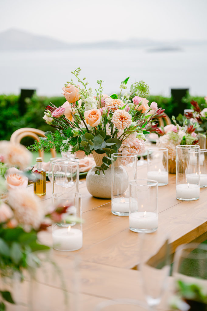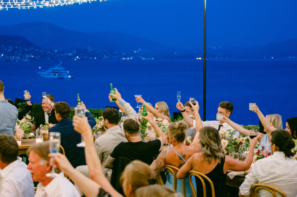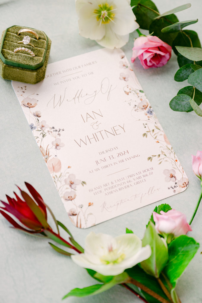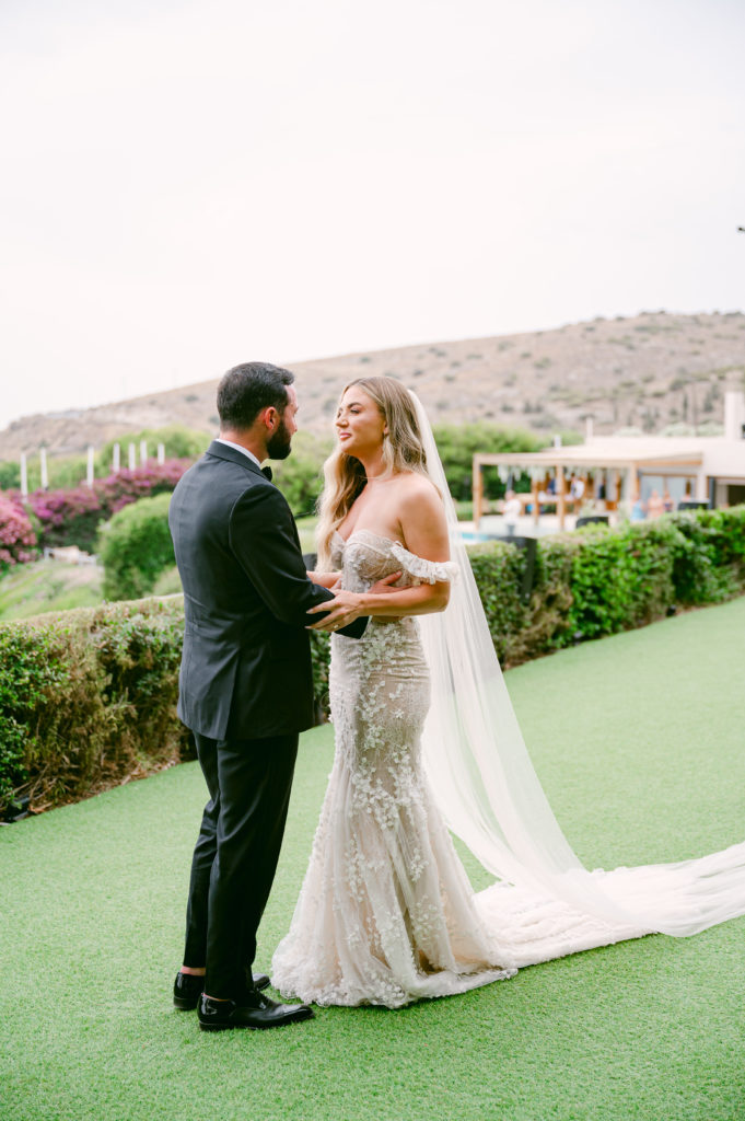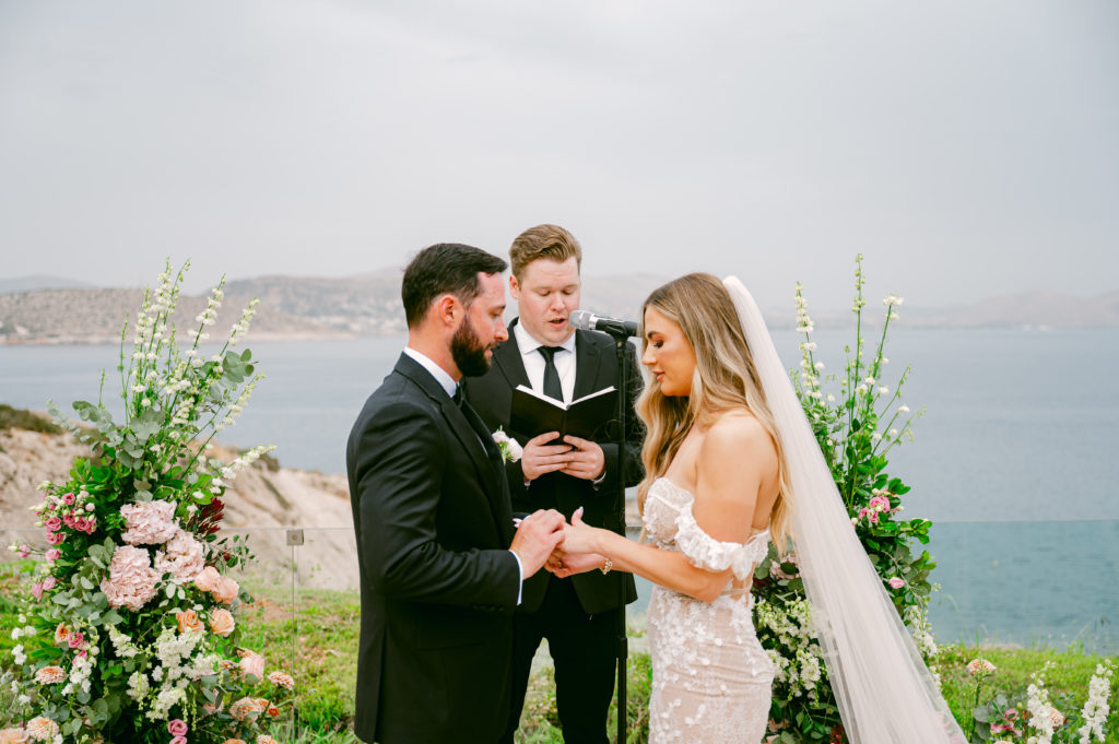 This romantic destination wedding unfolded in a lush private cliffside garden overlooking the endless blue of the Athens Riviera. Filled with heartfelt moments and vibrant décor, it beautifully reflected the couple’s love story.