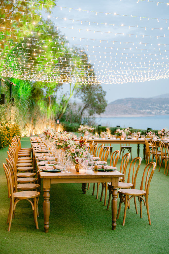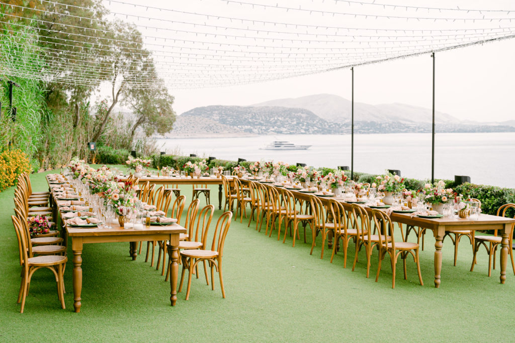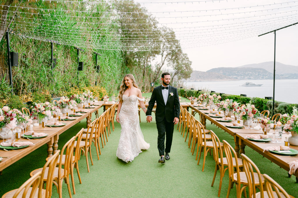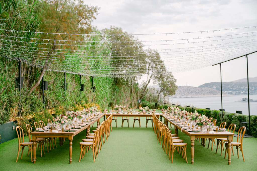 The breathtaking cliffside garden offered panoramic views of the Athens Riviera, making every moment feel cinematic. The harmonious blend of natural greenery, organic textures, and elevated décor created a uniquely intimate atmosphere that showcased the couple’s style and deep bond. This celebration was the perfect example of how a destination wedding in Greece can be both deeply personal and visually extraordinary—an unforgettable love story embraced by the beauty of the Mediterranean.