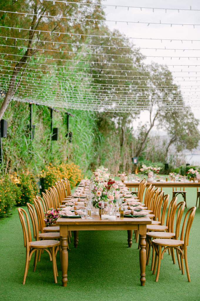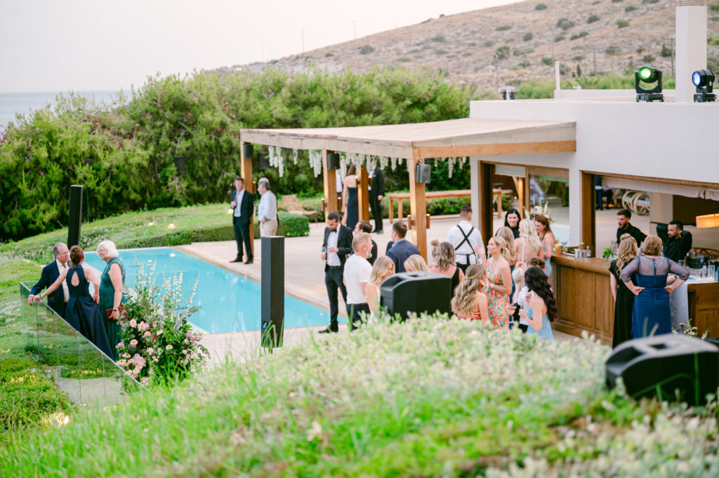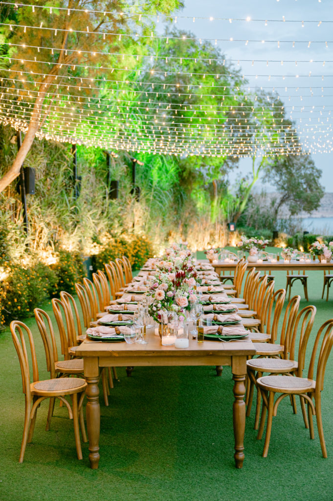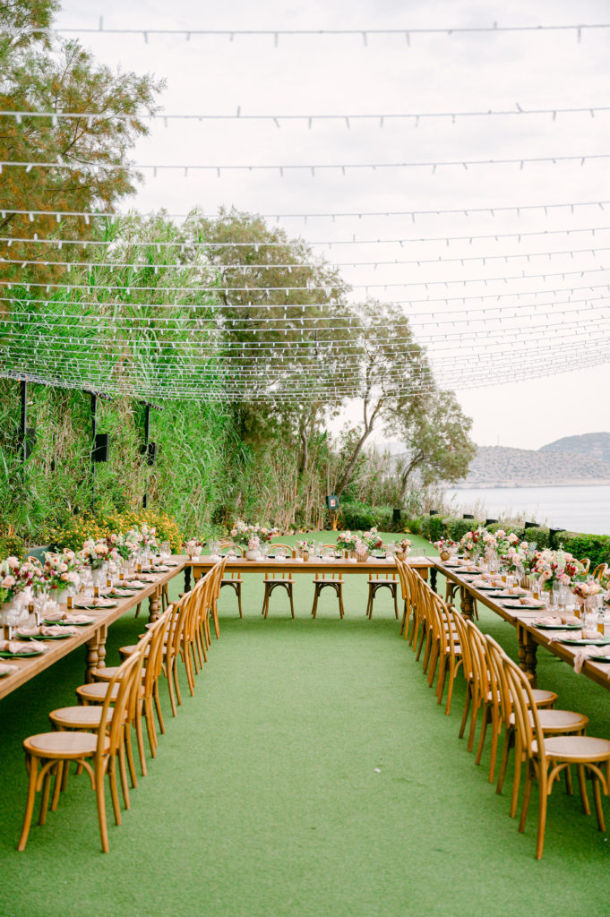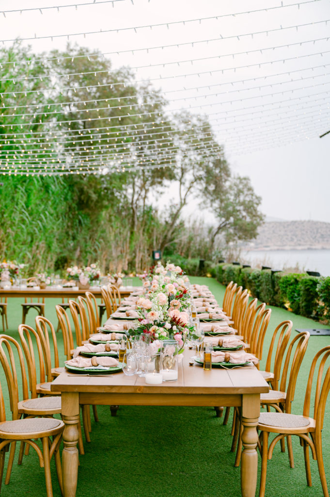 The breathtaking cliffside garden offered panoramic views of the Athens Riviera, making every moment feel cinematic. The harmonious blend of natural greenery, organic textures, and elevated décor created a uniquely intimate atmosphere that showcased the couple’s style and deep bond. This celebration was the perfect example of how a destination wedding in Greece can be both deeply personal and visually extraordinary—an unforgettable love story embraced by the beauty of the Mediterranean.