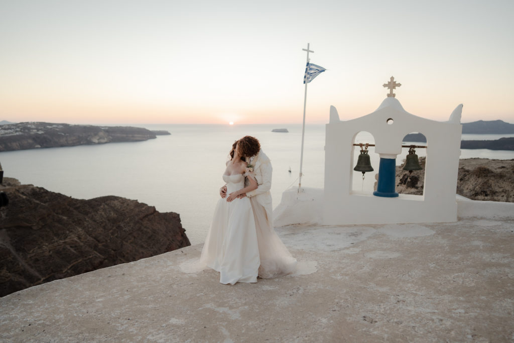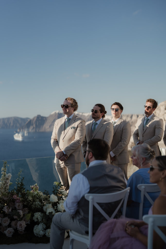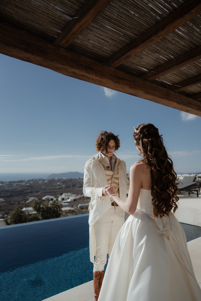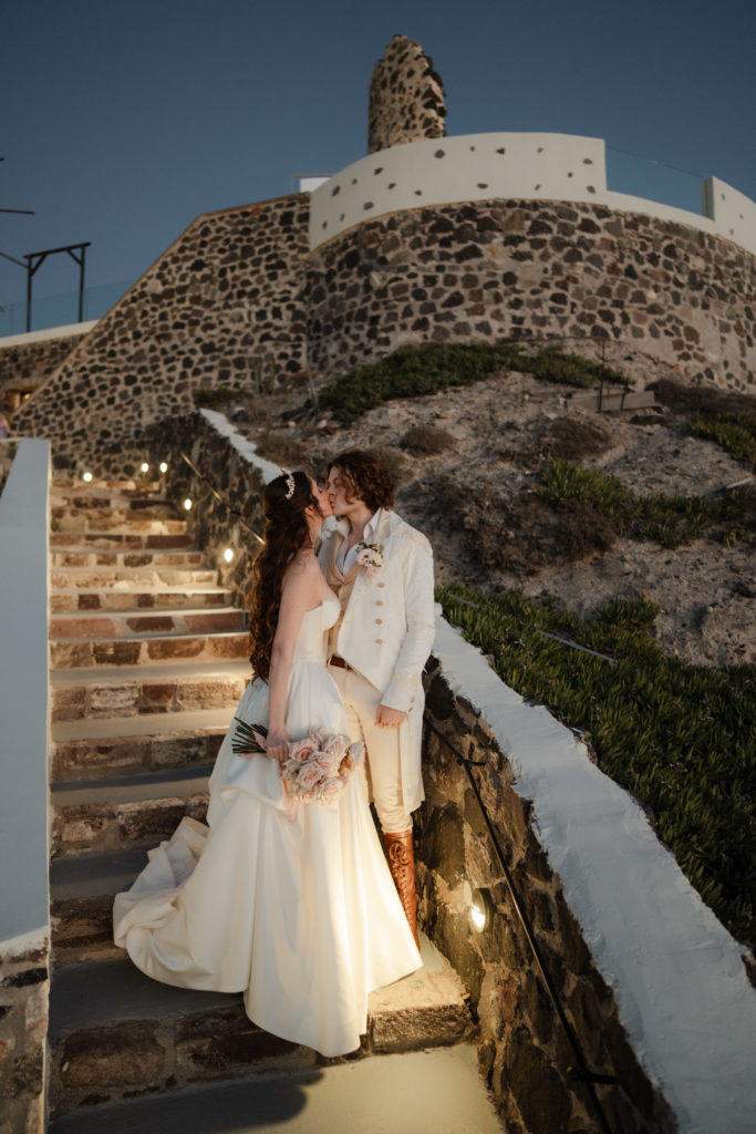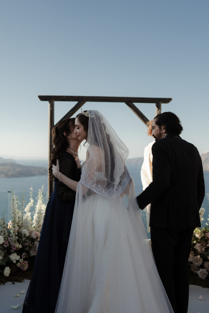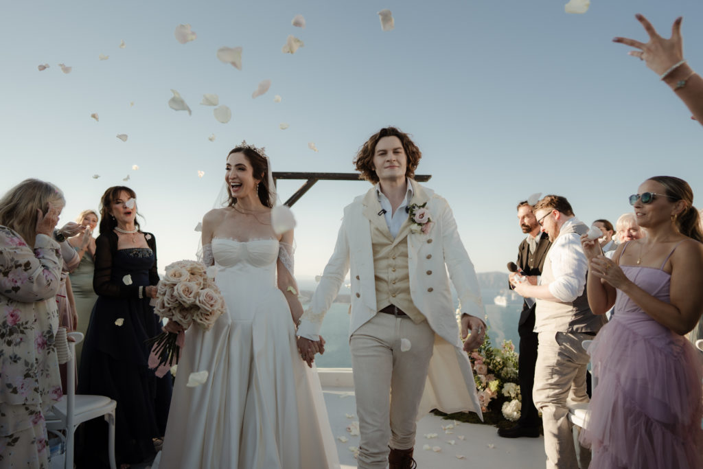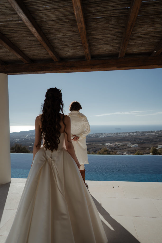 Perched atop the iconic cliffs of Santorini, this romantic destination wedding captured the essence of elegance and Mediterranean charm. The ceremony took place overlooking the sparkling caldera, where soft breezes and sweeping sea views created an unforgettable backdrop for the couple’s heartfelt vows. Surrounded by family and friends, the bride and groom exchanged “I do’s” in a perfectly serene setting that blended natural beauty with refined sophistication.
