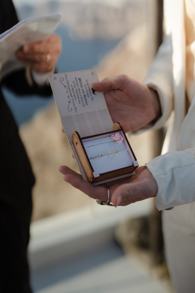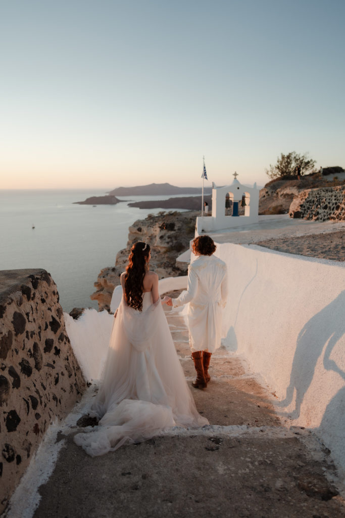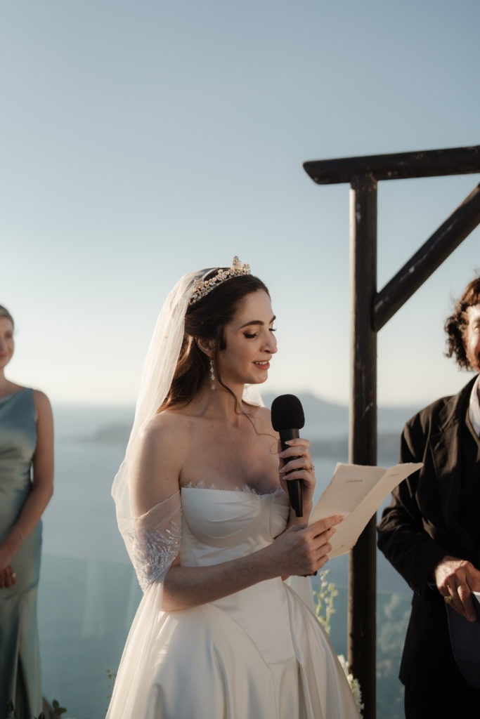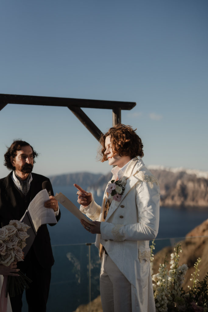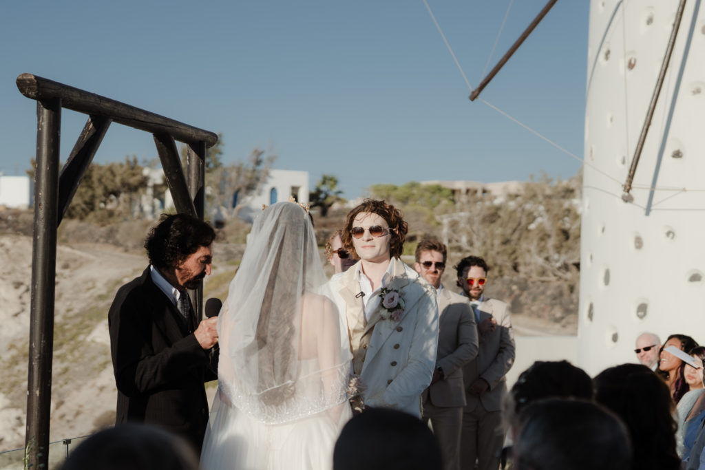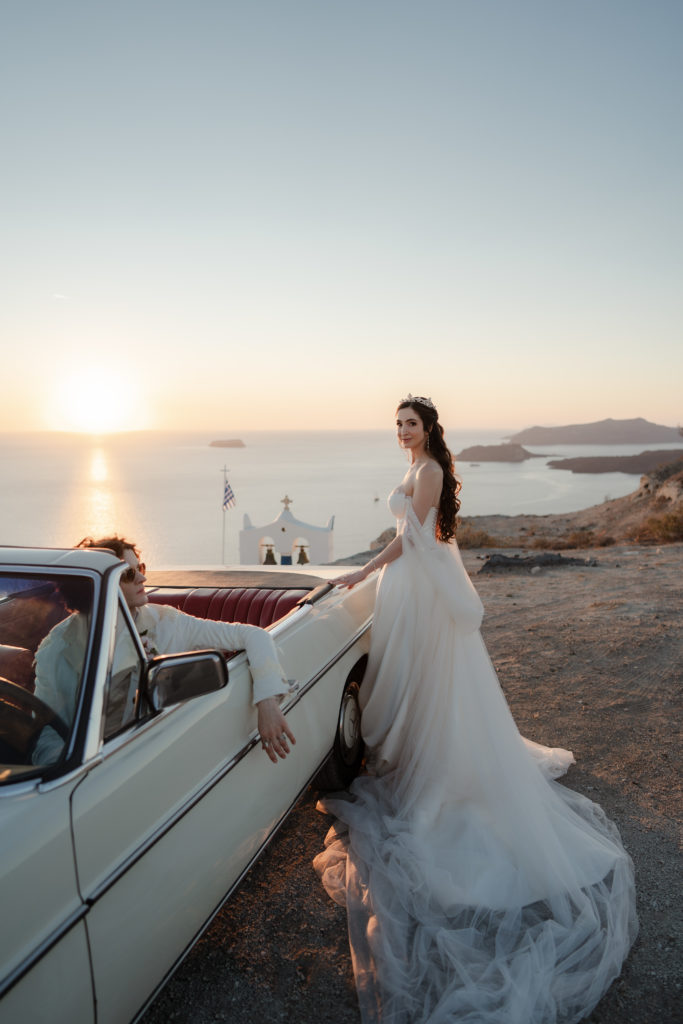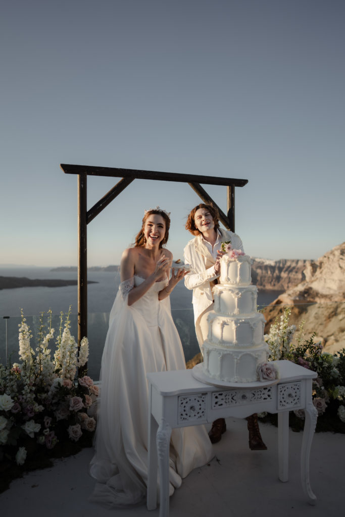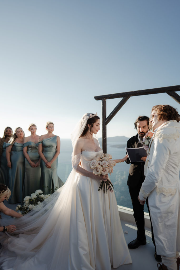 Perched atop the iconic cliffs of Santorini, this romantic destination wedding captured the essence of elegance and Mediterranean charm. The ceremony took place overlooking the sparkling caldera, where soft breezes and sweeping sea views created an unforgettable backdrop for the couple’s heartfelt vows. Surrounded by family and friends, the bride and groom exchanged “I do’s” in a perfectly serene setting that blended natural beauty with refined sophistication.