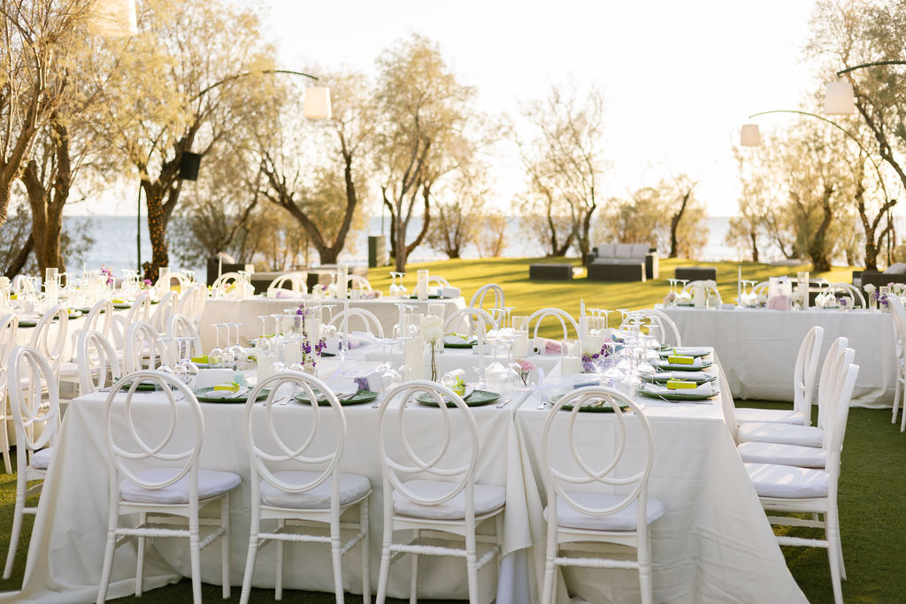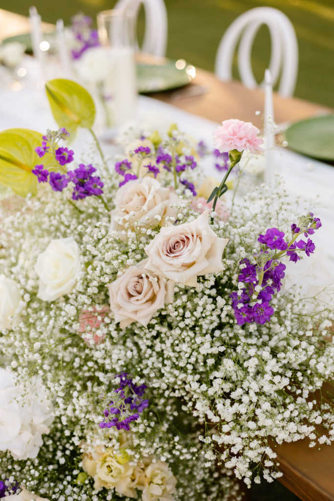Beneath a sapphire sky and the sighing sea, white roses bloom with lavender whispers, and love glows in the glow of candlelight. Salt-kissed vows drift over emerald chargers as the breeze carries joy along the flower-adorned terraces.