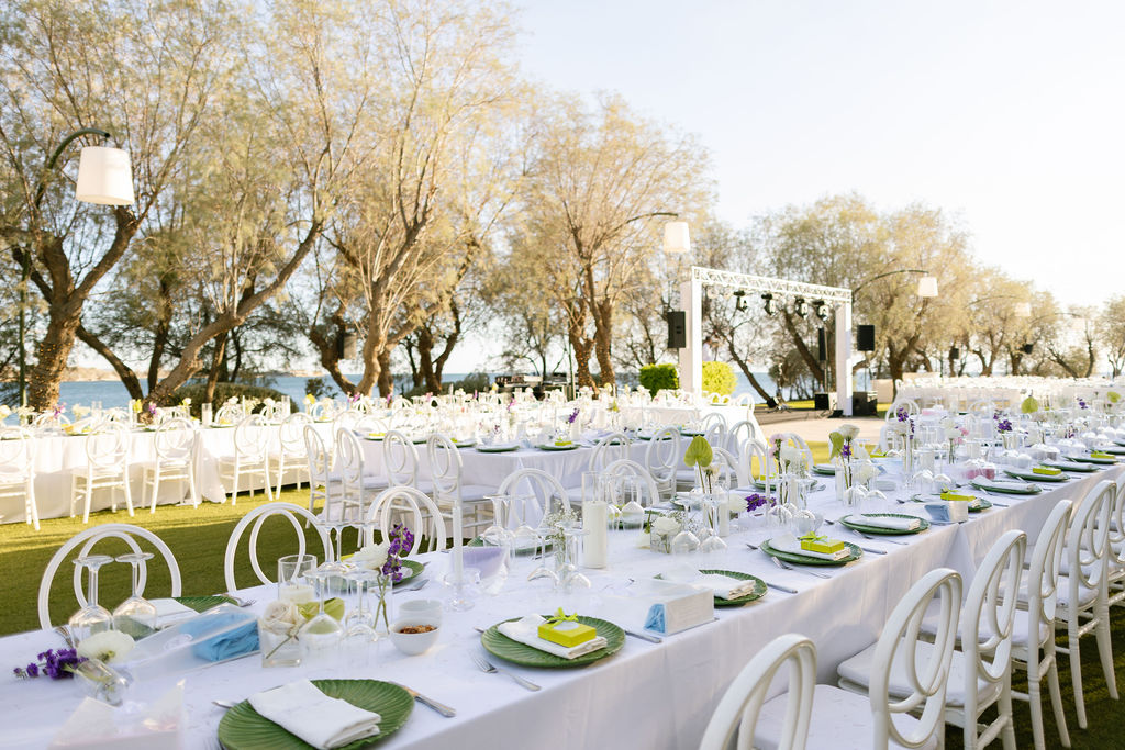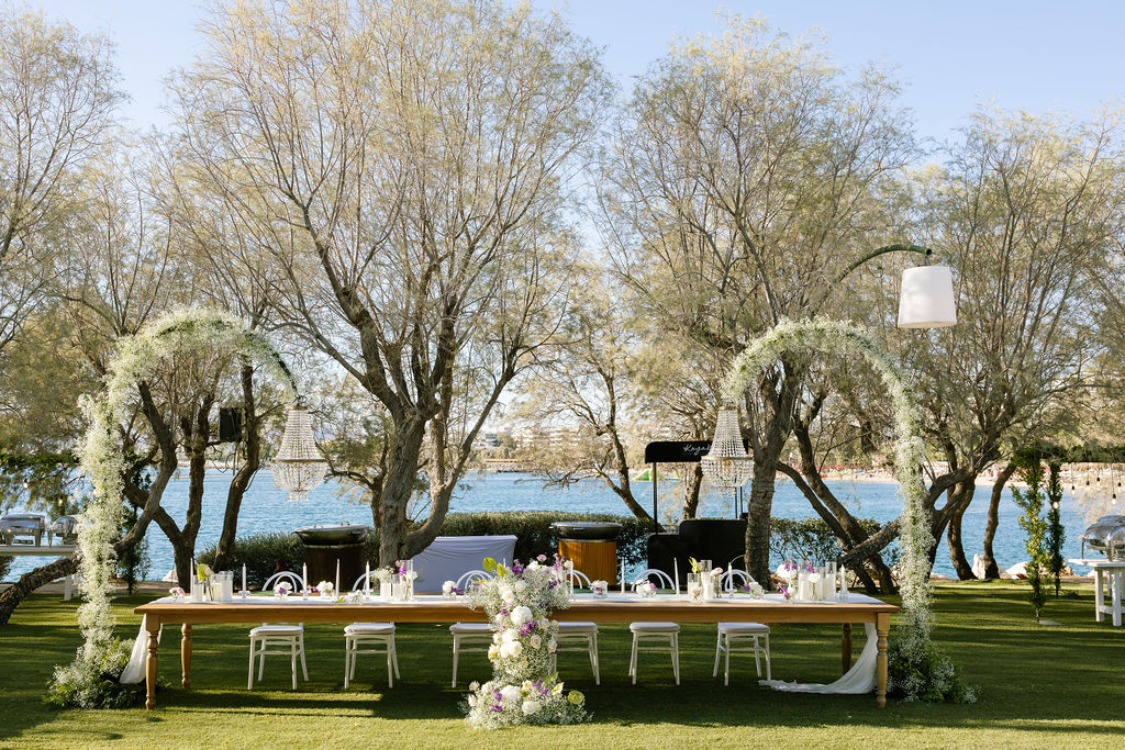 In the evenings, the venue transforms into a celebration along the sea: a fusion of Arabic warmth and Mediterranean charm, where shared mezzes and mint coffee mingle with the sound of waves. The decor emphasizes generosity and beauty—lush florals, airy textures, and the contrast of emerald chargers against ivory linen—creating a sophisticated, inviting atmosphere that speaks to timeless romance. Guests will be drawn to the sea-view setting, the intimate table configurations, and the rhythmic cadence of candles and flowers as night falls, leaving a lasting impression of an Arabic wedding that feels both exotic and at home on the Athens Riviera.